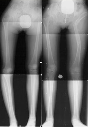 3. Рентгенография ног на всю длину с захватом тазобедренных и голеностопных суставов стоя на двух ногах с компенсацией укорочения.