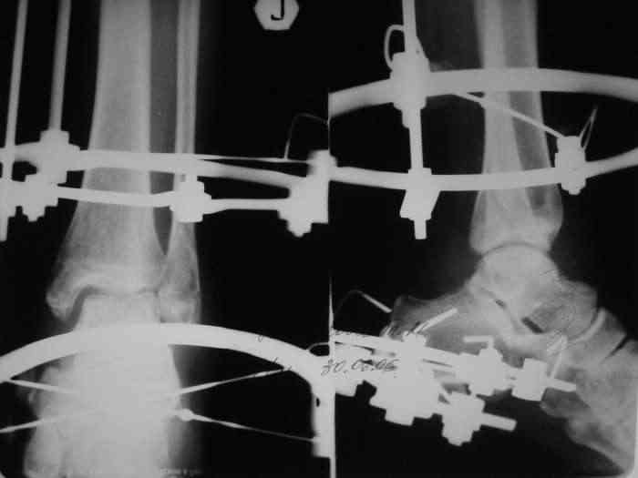 Здравствуйте, коллеги. Возвращаясь к теме по открытому переломо-вывиху стопы, (см. http://weborto.net/forum/1145454313/). Пациентка не соблюдает режим, злоупотребляет алкоголем (говорили мне знающие люди, что не надо делать умные операции дуракам ...). Единственная жалоба - наличие "дурацкого металлолома на ноге", ну, что тут скажешь ... :-((Обработал кожу в местах бывшего выхода спиц и заточил в "дисциплинирующую" гипсовую U-образную шину до в/3 голени ... и отправил с Богом домой (устроила в отделении вечер "авторской песни и пляски" после того как съела 0,5 литра).Мед.сестрички долго меня благодарили, как только за ней закрылась дверь. Рассея-матушка, блин ...Но не смотря на это, в принципе, я доволен результатом. Пользуясь случаем, хочу выразить огромную признательность и сказать большое спасибо Соломину Л.Н. и его коллегам за предоставленный титанический труд по "Основам чрескостного остеосинтеза", а также Артемьеву А.А. С уважением, Заднепровский Никита Николаевич < | >