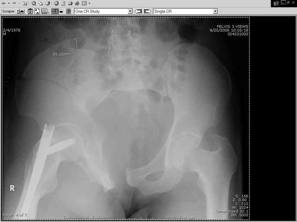 PS - as for the femur -- I had an idea about the malreduction in flexion, varus & ext rotation after seeing my colleague's postop fluoros from the nailing. I first recognized the actual magnitude of the malrotation after transferring the pt to the OR table for ORIF of his pelvis, and did not have consent for revision, among other