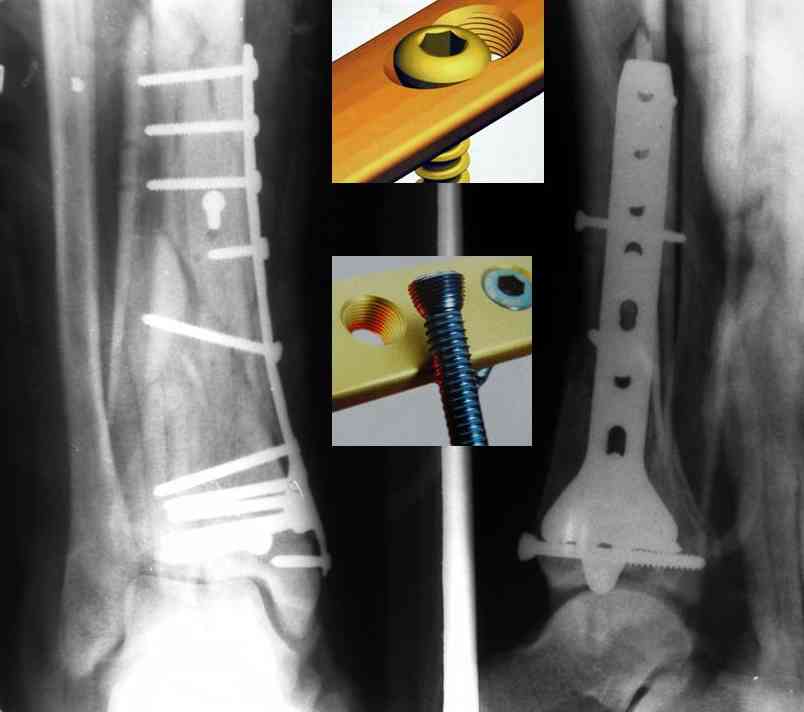 Ещё есть одна проблема когда есть перелом малоберцовой кость, то всё ясно. А когда малоберцовая кость не повреждена, то сразу накладывается аппрат наружной фиксации при поступлении, чтобы как бы перерастянуть отломки и главное убрать вальгусное или варусное смещение, а потом на 5-7 день открыто большеберцовая кость восстанавливается и фиксируется пластиной. С уважением Дрягин