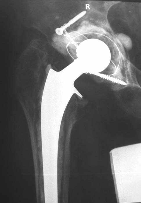 прямо скажем, очень загадочная конструкция с проволокой и винтами. :) На основании чего Вы подозреваете септическую нестабильность? Каковы результаты анализов? Согласен с доктором - нужно сделать пункцию. Есть ли снимки до и сразу после операции? Знаете ли Вы диаметр головки,какой будет внутренний диаметр Вашей чашки? Известно ли, чей протез? Может есть смысл найти автора работы и узнать о подробностях установки протеза?
