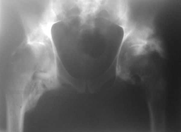 В гетеротопические оссификации вокруг тазобедренного сустава иногда вовлекается седалищный нерв.