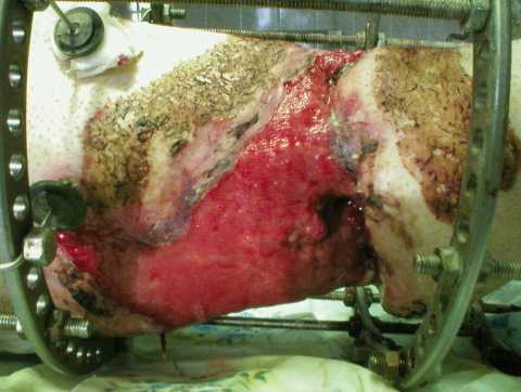 Добрый всем вечер! В продолжение темыВместо этапного эпикриза: Пациенту резецировали часть диафиза б\берцовой кости (около 5 см), лишённую мягких тканей. Сейчас всё выглядит так: < | >