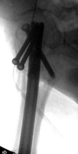 Правильно, ситуация изменилась, как говорят у нас теперь "different animal", надо решать проблему подвертельного перелома. При наличии различных вариантов фиксаторов, включая Страйкер Гамма 3, мы выбрали DePuy Antegrade Trachanteric Nail из-за многовариантности проксимальной фиксации и двойного изгиба. Вводится через вертел под 8 градусным углом, и есть достаточный передний диафизарный изгиб, предупреждающий пенетрацию дистального переднего кортекса.