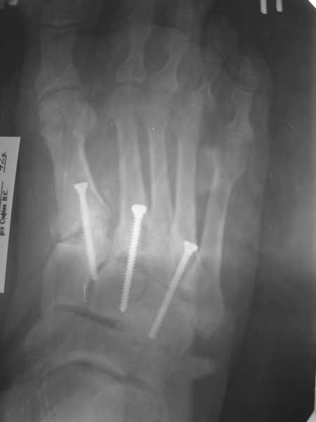 1.на снимке №3 (стопа в боковой проекции с винтами) складывается впечатление о сохраняющемся подошвенном подвивихе в суставе Лисфранака или это искажение при обработке фото?