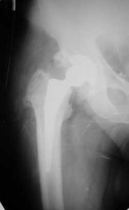Думаю ножка прихватилась, и при удалении вокруг нее надо будет аккуратно пройти узким тонким долотом. Высока вероятность удаления без раскола, но и к этому следует готовиться. Может циркляжик привентивно наложить. Если удаляться не будет, то можно пилой пройти вдоль большого вертела до ножки и чуть развести пропил дллотом. Ножку ВЫ извлечете уже без гидроксиапатитного покрытия.