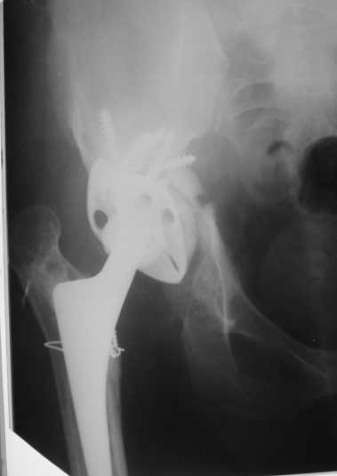 Уважаемые коллеги!Просим вашего совета по поводу вариантов лечения пациента П. 44 лет 1998 г. - тотальное бесцементное ЭПТБС слева. 1999г. ревизионное протезирование правого ТБС и вновь инфекционная нестабильность - протез удален.2000 г. установлено кольцо Мюллера и ножка типа Споторно справа (рис. 1). 2003 г. нестабильность тазового компонента (рис. 2) - протез удален. 2005 г. при падении с высоты - перелом бедра в верхней трети, наложение АВФ . 3 года пациент ходил с аппаратом(рис. 3). Обращение в нашу клинику в 2008 г. - демонтаж аппарата (рис. 4). Сегодня укорочение 8 см. Слева - протез стабилен, безболезнен. Что делать дальше? 1. ревизионное ЭП правого ТБС? 2. формирование опорного бедра? 3. Удлинение бедра на АВФ? АИФ < | >