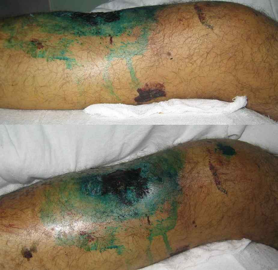 Очаг некроза 4 на 5 см по передней поверхности голени не оставил никакого варианта кроме внешнего остеосинтиеза.