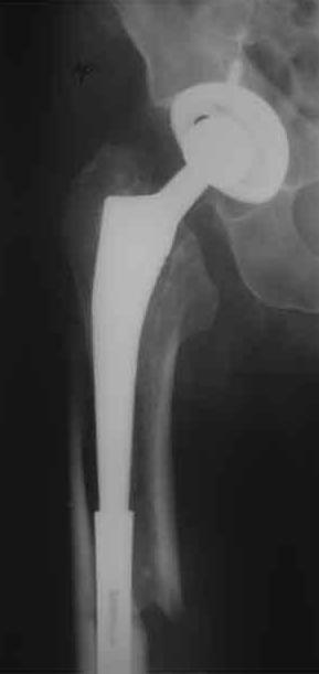 Это"Corail", так что никакой цементной мантии там нет.Непонятно с чего Вы решили,что ножка была установлена в "варусе"? Нынешнее ее положение, получено после травмы.