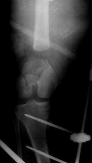 > Выполена резекция бедренной кости 9 см