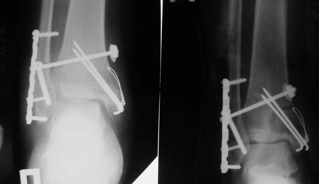 Здесь несколько частных случаев: перелом голеностопа со сравнительными снимками и разрыв синдесмоза, а также медиальная Hook пластина.