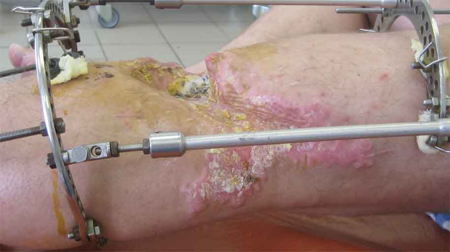 Какую тактику лечения предпочесть? Планирую замещение костного дефекта цементом с а/б, укрыть латеральной головкой икроножной мышцы, на нее кожную пластику. Опыта подобных операций нет, переправить пациентка в другое, более сведущее ЛПУ не получается (ко всему прочему пациент абсолютно без денег, производство исчезло). Предпочесть другие варианты, какие? Помогите с материалами по теме, книги, презентации, видео). Master technic b color atlas у меня есть). Заранее благодарен.