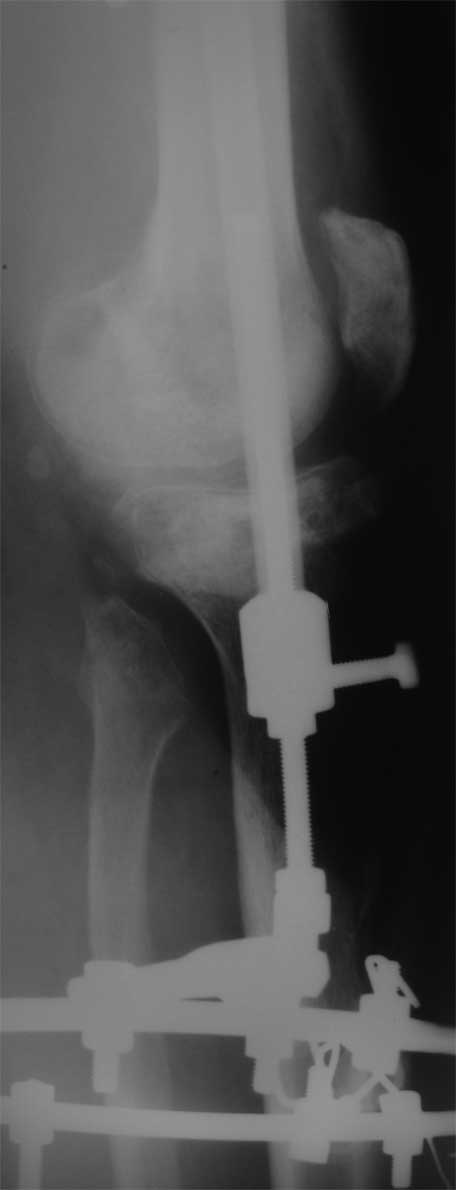 - отдельная тема. о которой я обязательно доложу. Пока, что : выполнили перифокальную остеотомию IM пилой, IM пластику, IM остеотомию бедра в в/3, с фиксацией в аппарате (приняли к сведению критические замечания) Тянем, наблюдаем.