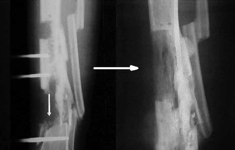 Неприятным моментом было обнаружение двух тугих "ложняков" на голени после стабилизации проксимальных сегментов.