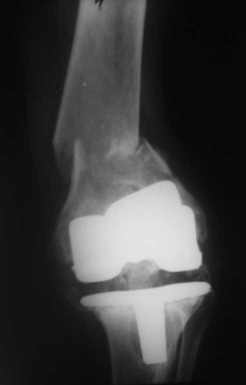 Его (при грамотном применении) никто не отменял и на ревизию здесь ничто не повлияет. Тем более судя по снимкам имеется нестабильность тибиального компонента а про бедренный компонент не убедительно. Пока больна дождется квоты (учитывая нашу действительность) глядишь и перелом бедра срастется не вытяжении.
