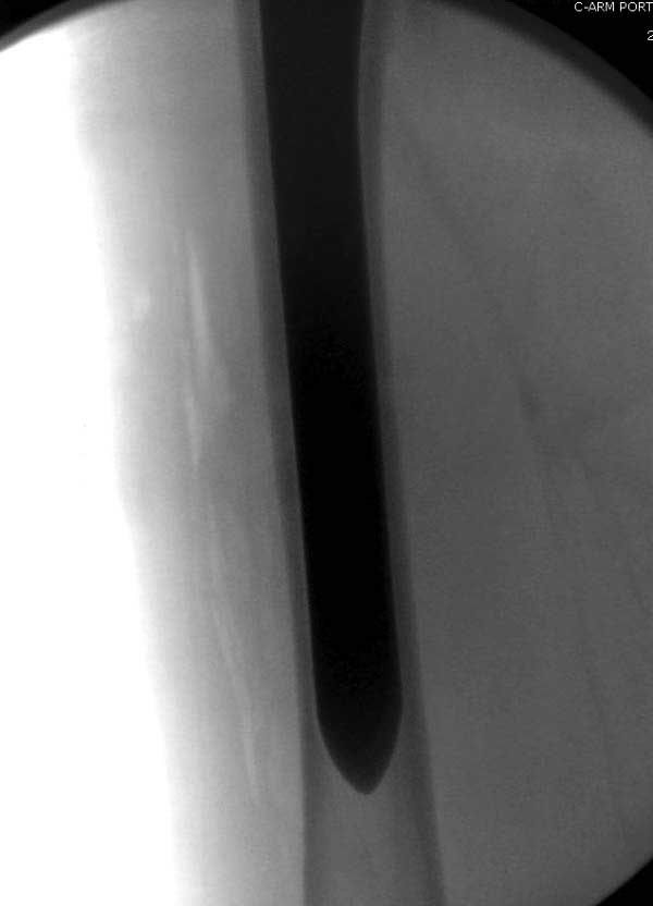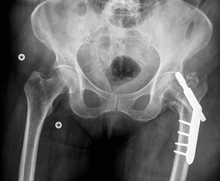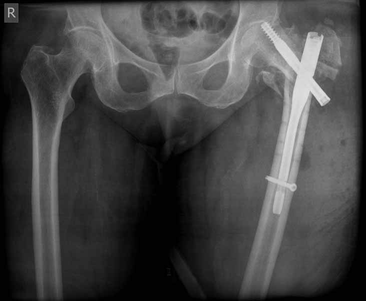 Повторно поступает после двух с половиной лет, где обнаруживается перелом на второй стороне. Немного сложно, но для фиксации выбрали Antegrade InterTan Smith Nephew Nail и с момента фиксации более 3х мес.