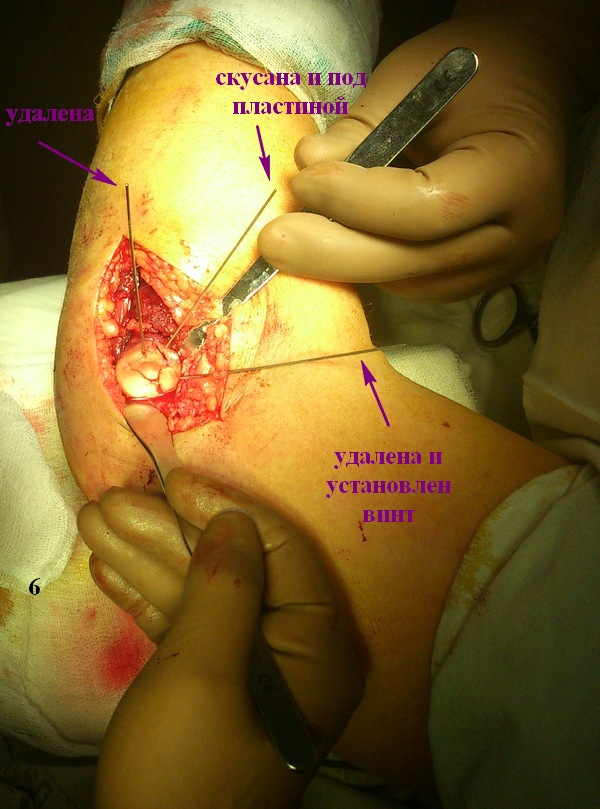 2. В частной беседе с зарубежными специалистами дана резко негативная оценка по тактике остеосинтеза спицей в данном случае и вообще. В частности говорилось, что спицы никогда не должны находиться в местах где их нельзя легко удалить. Например, можно концы спиц оставить подкожно, снаружи, но никогда не "замуровывать". Негативные последствия этого мы увидели в нашем примере.