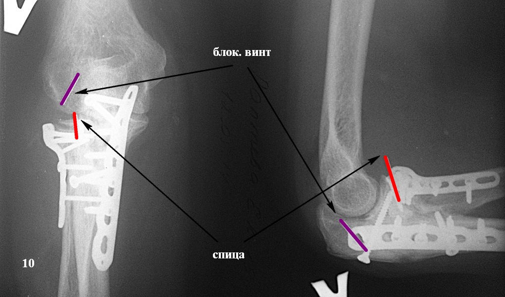 1. Через неделю буду настаивать на удалении спицы и винта. Рентгенологический контроль покажу по готовности.