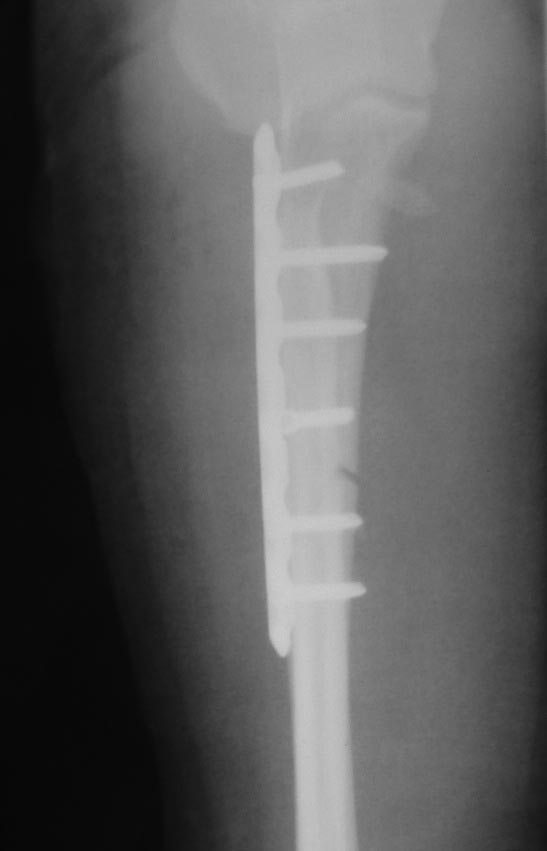 Вопрос в том, не сломается ли дальше еще винт? Или пластина? Не нужно ли удалить фиксаторы уже сейчас? Ладно бы только спица, но почему винт сломался? Значит сохраняется патологическая подвижность.