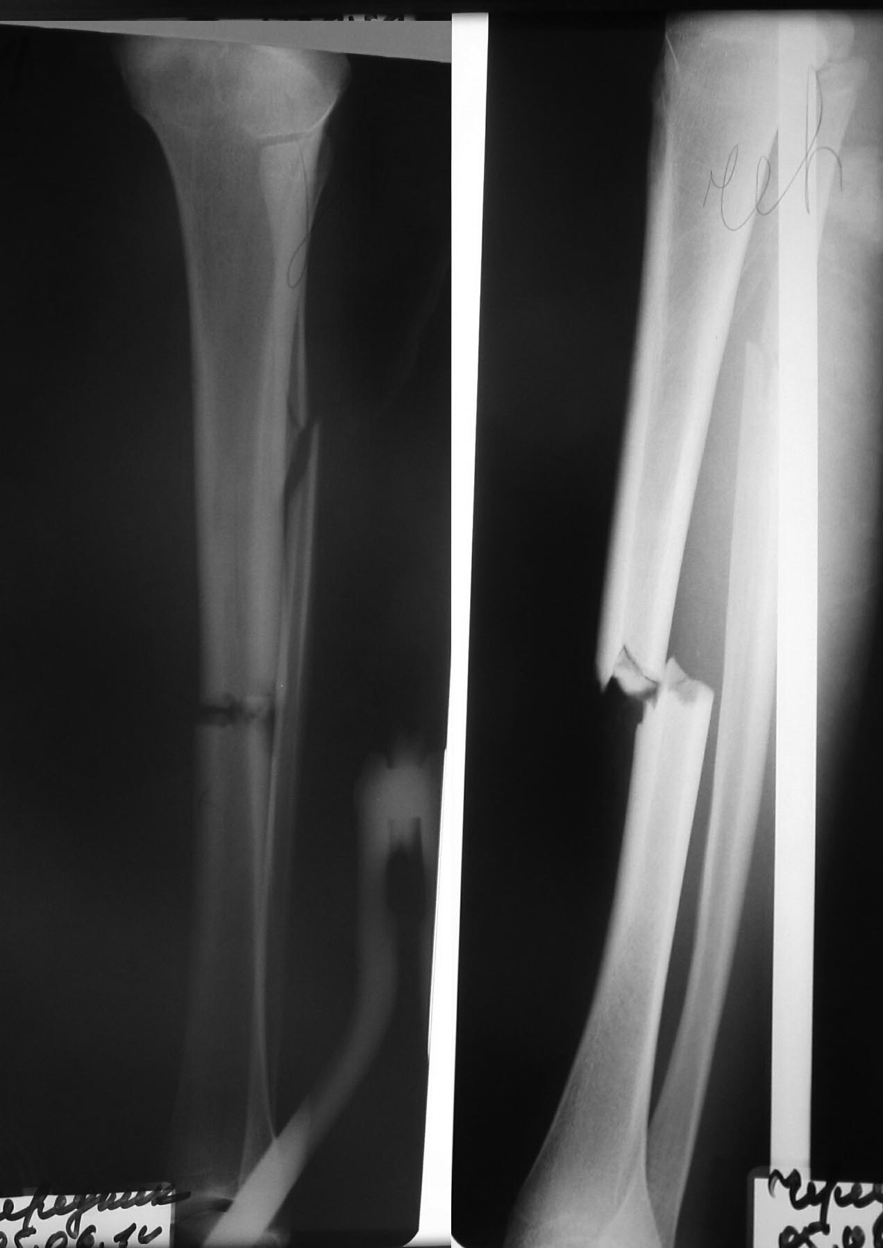 Травма в ДТП. Девочка. Перелом обеих костей голени практически тип 42-А3.