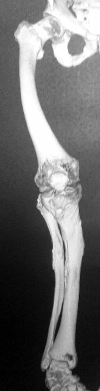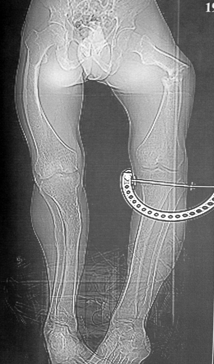 А действительно это Блаунт? Может быть ахондроплазик или дисхондроплазик. 2 недели назад оперировал, поставил обычную компрессионную пластину АО и никакой резекции. И у моего пациента выглядел как псевдартроз. Еще раз порасспрашивайте б-го, может удлиняли бедро? Не забыть бы в понедельник рентгены сфоткать и отправить Вам