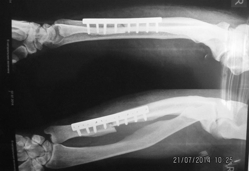 Сегодняшние снимки из операционной, подходящей пластины не было, а гвоздь был.