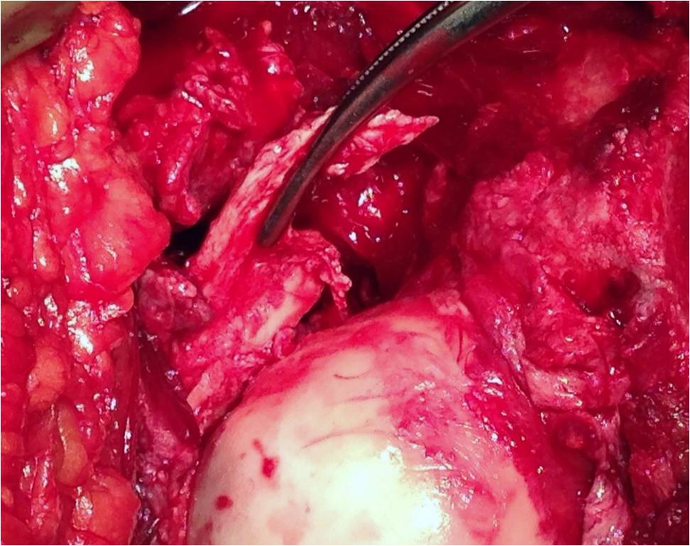 Тактика остается прежней: после стабилизации состояния пациентки выполнить задний доступ по Kocher-Langenbeck с флип-остеотомией большого вертела и задним вывихом головки бедра. Остеосинтез головки винтами. Ревизия полости сустава и далее по ситуации.