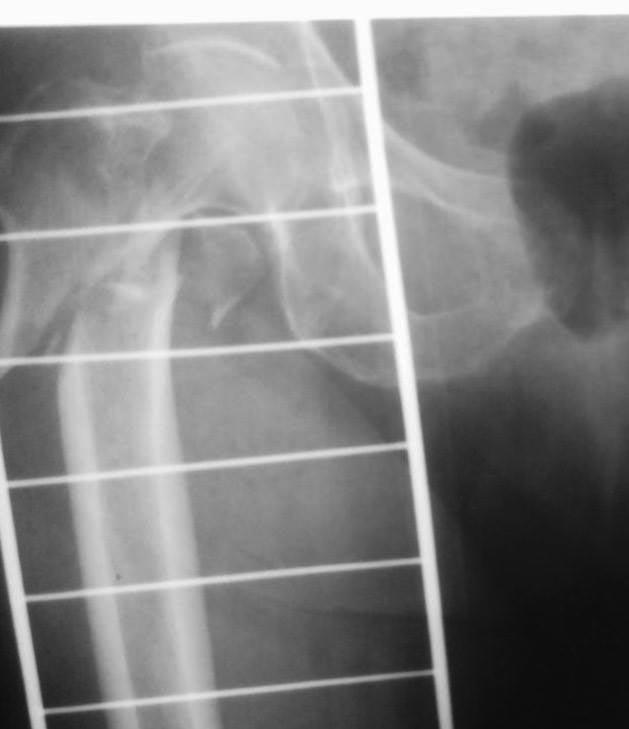 Это длинная псевдограмма, как понимаете, Ее сложно сзади завести, с ЭОПа только эта картинка, я за соседним столиком оперировал, парни пытались погнуть - обломился, в итоге поставили короткую, репозиция примерно такая же, снимки могу завтра -послезавтра выложить. У нас уже были проблемы с этим стержнем в плане переднего Кортекса, да и другие тоже, у них на проксимальный винте не "борозды" , а "царапины" - либо блокировать наглухо либо ротационной стабильности нет, да и прямая как шпага((((