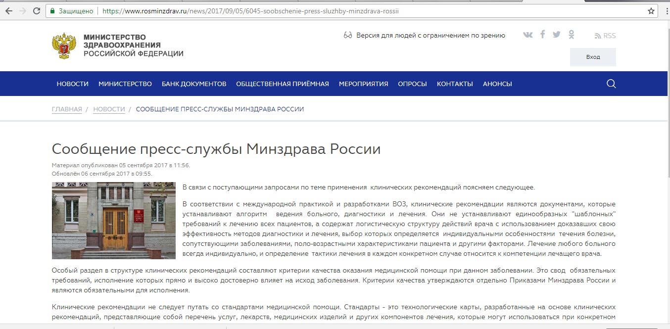 Уважаемые коллеги, кто чем пользуется в работе? Точнее кого по каким документам нагибают? Вроде бы уже писал, но, как-то с каждым днем все актуальнее. Все запуталось. стандарты, клин. рекомендации, порядки, критерии оценки качества и тд, все это во многом противоречит друг другу, зачастую не имеет какого-то смысла. Разъяснения пресс-службы минздрава в скрине противоречат позиции юристов, заявлениям скворцовой. Скрин сообщения прилагаю, те стандарты, что наковырял тоже попробую (но они большие, могут не поместиться.).