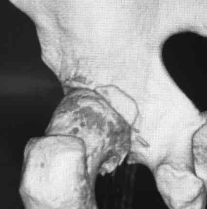 Мы фиксируем задний край впадины не вывихивая головку и готовим на протезирование.